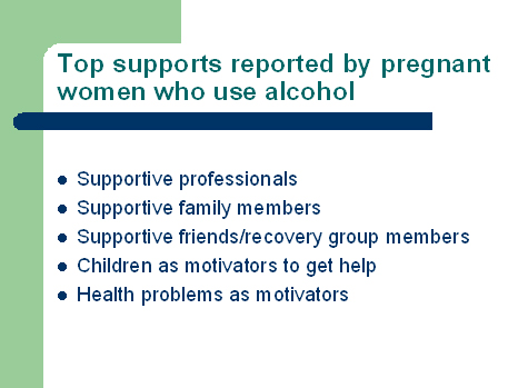 Health-care providers can play an important role in providing the necessary supports in making changes.  Pregnant women across British Columbia who sought services related to their substance use and health put professionals at the top of their list of supports: